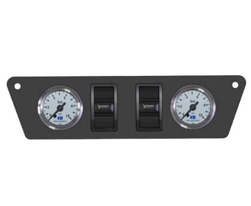 Lieferumfang: 2 Faltenbälge mit Befestigungsstützen, Fahrzeugspezifisches Bedienelement, Kompressor mit 2 Manometer, 2 Bedienschalter, Sicherung, Druckbegrenzer (Druckschutzventile), Füllventile, Luftkupplungen und Verbindungskupplungen, Luftleitung(en), Bremsanpassungen (wenn notwendig), Montageanleitung, TüV-Gutachten