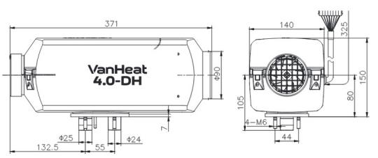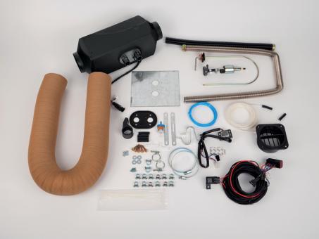 VanHeat 4.0-DH Heizgerät, digitales LCD-Bedienelement, Kabelbaum mit Steckverbindern, umfangreiches Montagematerial für die Installation in das Fahrzeug