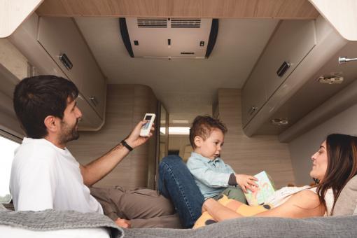 Die Plein-Aircon ist das erste 12V-Klimagerät für Reisemobile und teilintegrierte Reisemobile, das nur von der Hilfsbatterie gespeist wird. Ein Wechselrichter oder Generator ist nicht notwendig, es wird aber empfohlen einen Ladebooster zu installieren. Durch den Softstart hat die Klimaanlage einen sehr niedrigen Anlaufstrom.