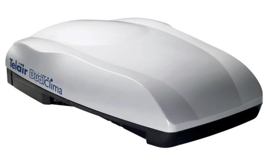 Monoblock-Klimaanlage DUALCLIMA, die eigens entwickelt wurde, um auf dem Dach von mittelgroßen und großen Wohnmobilen und Wohnwagen installiert zu werden. Besondere Aufmerksamkeit wurde einem LEISEN BETRIEB sowohl im INNEN- als auch im AUSSENBEREICH beigemessen.