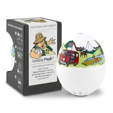 In passendem Reisegewand und mit Melodien, die die Reiselust wecken oder untermalen. Egal ob Extrembergsteiger im Basislager oder Dauercamper in Feinrippuniform. Jetzt kann jeder perfekt Eier kochen. Einfach PiepEi zusammen mit den echten Eiern lagern, zusammen kochen, warten bis der Kochtopf singt, zusammen abschrecken und nur die echten Eier essen.