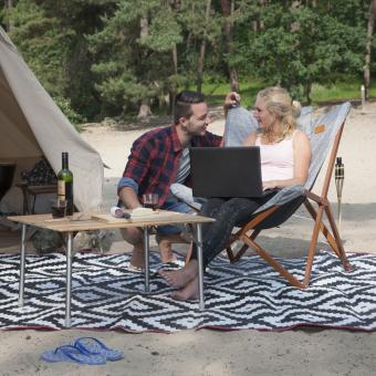 Ein äußerst luxuriöser und bequemer Liegestuhl mit einem stilvollen und stabilen Buchenholzrahmen. Die Sitzfläche ist gepolstert und hat eine schöne Leinenoptik. Die Kombination aus dem besonders breiten und tiefen Sitz, dem gepolsterten Stoff und dem Kissen macht diesen Stuhl besonders bequem. Der Stuhl kann zusammengeklappt werden und hat somit ein geringes Packmaß. Inklusive Packtasche.