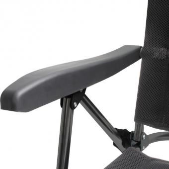 Der platzsparende Alu-Klappstuhl ist ein Niedriglehner mit fester Rückenlehne und Bügelfuß. Der Bezug besteht aus komfortablem 3D-Gewebe.