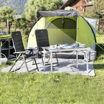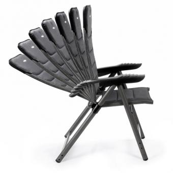 Hochwertiger Klappstuhl mit 7-fach verstellbarer Rückenlehne. Der Stuhl verfügt über ein elegantes modernes Design. Das Gestell aus Alu-Ovalprofil ermöglicht ein sehr flaches Packmaß.