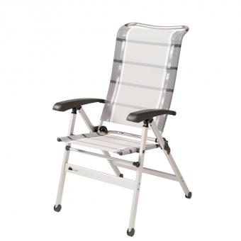 Stabiler Sessel mit 76 cm hoher Rückenlehne. Von innen verstärktes Aluminium-Vierkant-Gestell für extra Stabilität. 8-fach verstellbar. Inklusive Samplerstick.