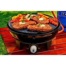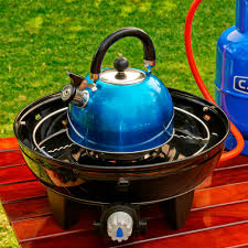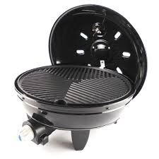 Dieses robuste, kompakte und tragbare Tischgerät mit Piezozündung und einem antihaftbeschichtetem Alu-Grillrost (ø 38 cm) ist perfekt dafür geeignet, um Fleisch, Fisch oder Gemüse zu grillen. Die Rillen des antihaftbeschichteten Grillrostes leiten die Wärme optimal. Ein Topfständer ist inklusive, sodass in einem Topf Wasser gekocht werden kann. Der Grillo Chef wird in einer praktischen Tragetasche verstaut.