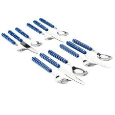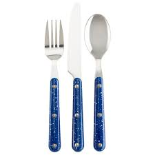 Das klassisch, elegante Besteckset Pioneer in Emailleoptik mit durchgängiger Edelstahlkonstruktion bietet Qualität und Strapazierfähigkeit. Das Besteckset ist die perfekte Ergänzung für die GSI Outdoors Emaille-Ausstattung. Inhalt: je 4 Löffel, Messer, Gabel.