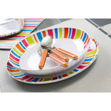 Das Geschirrset Spectrum ist besonders hochwertig und kann in vielen Variationen kombiniert werden. Die Linie kommt in fröhlichen sommerlichen Farben. Das Service wurde aus 100 % Melamin gefertigt. Alle Teile sind mit Anti-Slip-System ausgestattet.