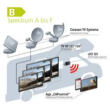 Das Caravan-TV-System besteht aus einer vollautomatischen CAP-Dreheinheit von Kathrein sowie einem TV-Gerät von alphatronics. Die gesamte Steuerung erfolgt direkt über ein TV-Gerät ohne zusätzliche Einbindung eines separaten Steuergerätes oder Receivers. Dadurch sind nur noch zwei Komponenten für den TV- und Radioempfang im Caravan oder Wohnmobil nötig (Drehanlage und TV-Gerät). Über ein und dasselbe Koaxialkabel wird sowohl die Dreheinheit gesteuert als auch das Sat-Signal an das TV-Gerät weitergegeben.