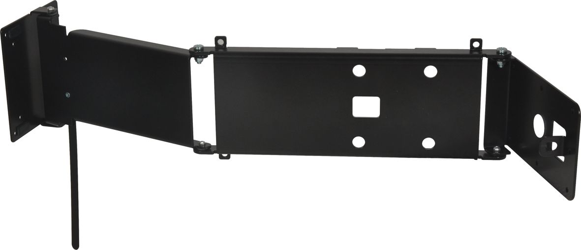 Besonders kompakte Halterung mit 3 Drehpunkten, sehr großem Schwenkbereich und Verriegelung, damit sich die TV-Geräte während der Fahrt nicht bewegen. Schwenkbereich 180°, Maße (eingeklappt) B 29,6 x T 3,4 x H 12,5 (mit Arretierhebel 25) cm, Gewicht 1,8 kg. Wandabstand ausgeklappt ca. 50 cm.