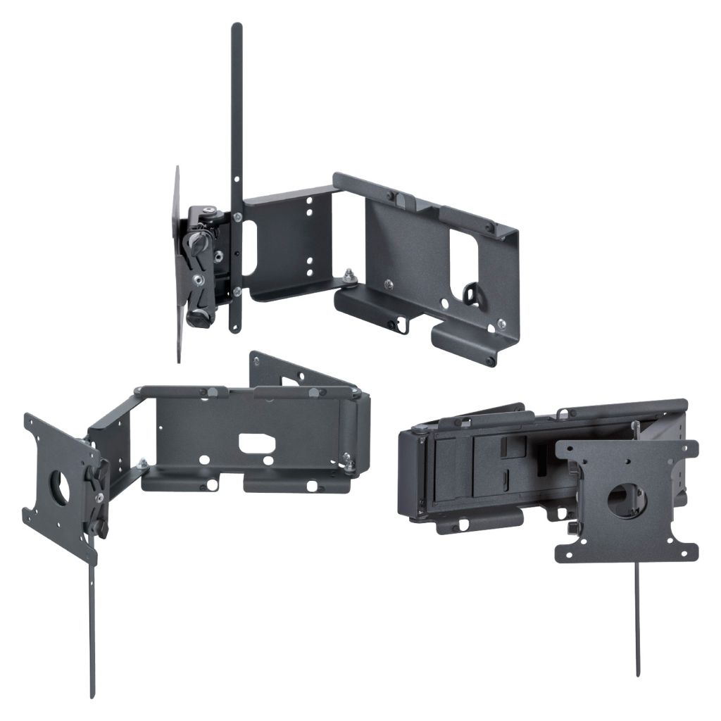 Neigbare Halterung aus robustem Stahl mit Arretierungshebel, der sowohl unten als auch oben montiert werden kann. Tragkraft 7 kg.