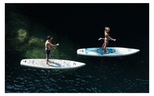Das 11’6 Touring Classic mit spitzem und flachem Shape bietet sowohl Allround- als auch Touring-Eigenschaften. Die Breite von 31 Inch sorgt für eine gute Kippstabiliät und viel Volumen. Es ist handlich, wendig, vielseitig einsetzbar. Das neue gewobene Pre-Laminated Double-Layer-Dropstitch macht es robuster und steifer als sein Vorgänger und obendrauf noch ein Kilogramm leichter. Die Fibreglass Foot Bases im Standbereich sorgen für ein Hardboard-Feeling.