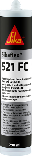 Sikaflex-521FC ist ein vielseitig einsetzbarer Kleb- und Dichtstoff, der auf vielen Untergründen wie z.B. Glas, glasierten Oberflächen, Email und lackiertem Holz ohne Primer eingesetzt werden kann. Das Produkt ist elastisch, geruchsarm und witterungsbeständig.