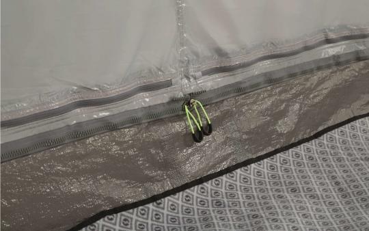 - Regengeschützter Eingang (mittels Reißverschluss verschließbar)