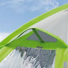 Vorderwand als Sonnendach ausstellbar (Aufstellstäbe nicht im Lieferumfang enthalten). Eingang nach oben aufrollbar. Mit 2 Hochentlüftungen und 2 Fenstern mit Innengardinen.