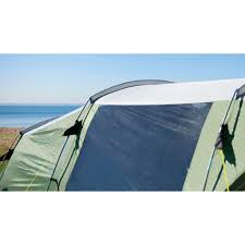 Mit dem Dayton von Outwell sind Sie für kürzere Reisen bestens gerüstet. Für Wochenendausflüge oder zum Herumreisen ist das kompakte Packmaß ideal. Das Zelt bietet volle Stehhöhe und reichlich Stauraum dank Netztaschen im Innenzelt. Der große Vordereingang kann an warmen Tagen vollständig geöffnet und mit einem Moskitonetz gegen Insekten geschützt werden, während der regengeschützte Seiteneingang an regnerischen Tagen unverzichtbar ist. Große Fenster lassen die Camper das Geschehen außerhalb hautnah erleben oder werden dank aufrollbarer Vorhänge komplett geschlossen, um die Privatsphäre zu wahren. Die abgedunkelten Premier-Schlafkabinen sind mit einem 360° Access System ausgestattet. Überzelt und Innenzelt sind mit Kabeldurchführungen versehen.