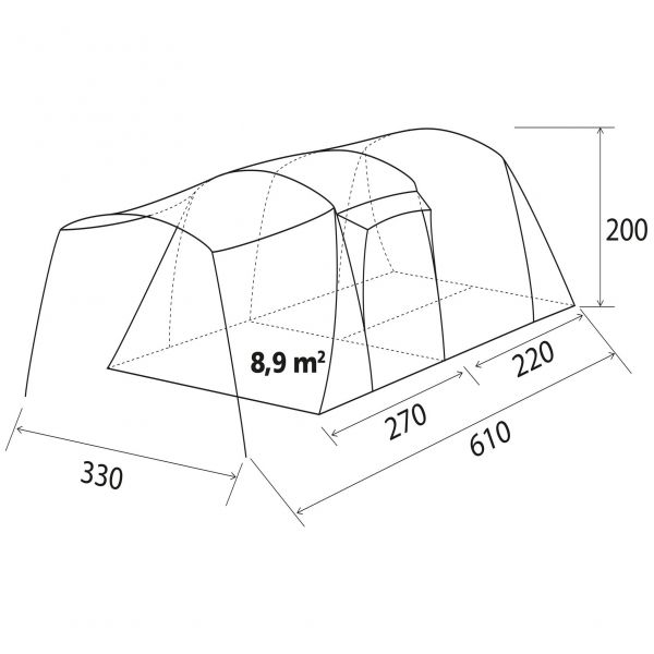 Großes Familienzelt mit A.I.R. Tech Luftgerüst (3 Bögen) und rundum eingenähter Bodenwanne aus widerstandsfähigem PE.